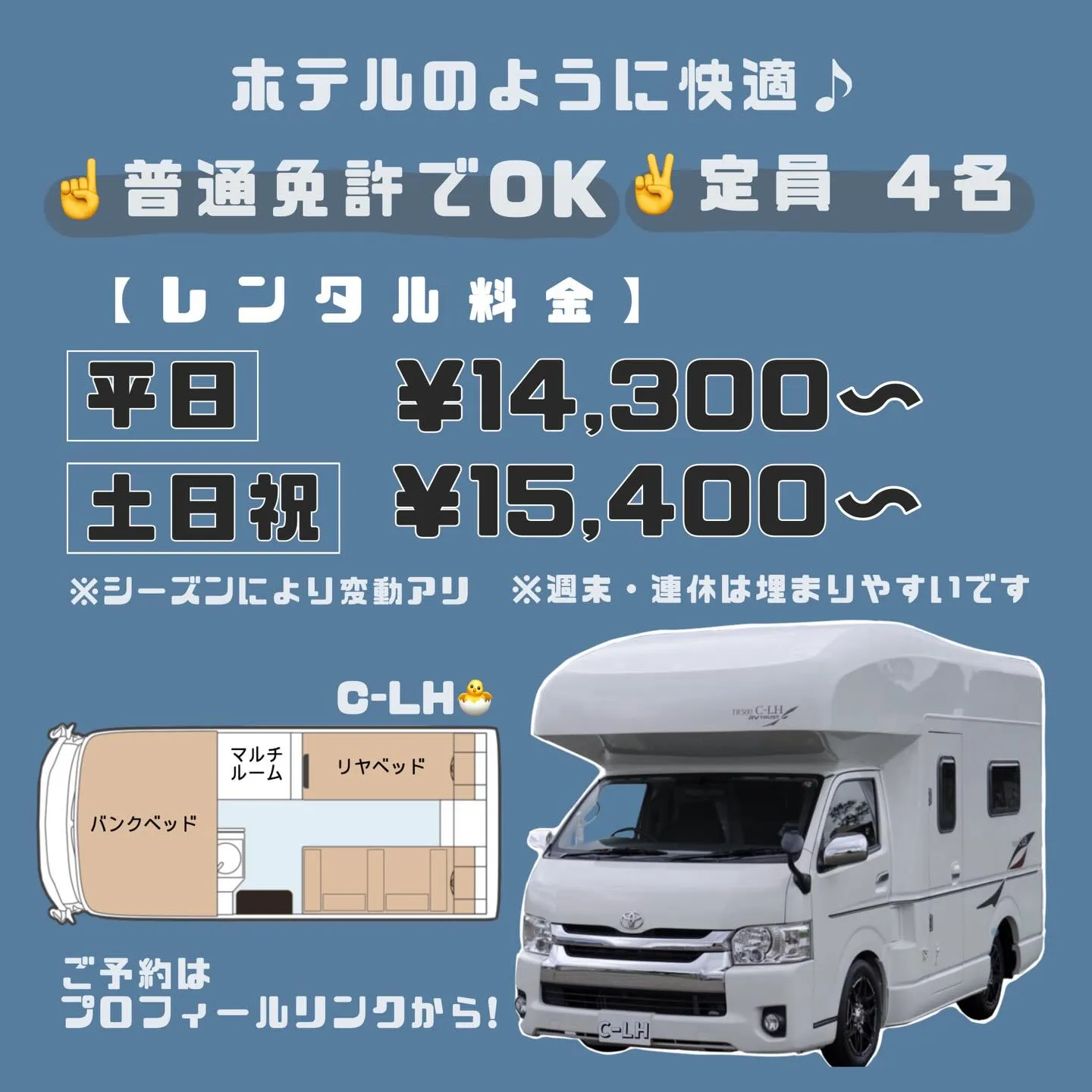 4月24日・25日のライブ日程に合わせてキャンピングカーを選ぶ際は、予約のタイミングと車両タイプが重要です。特に人気イベント開催時は、直前になると希望の車種が埋まってしまうことが多いため、早めの予約が鉄則です。2名利用の場合、コンパクトで取り回しの良い車種や、ベッドスペースがしっかり確保されたモデルがおすすめです。